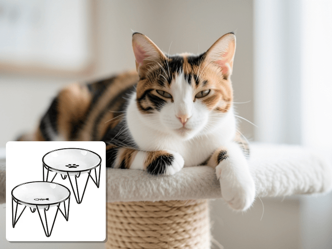 For cats with esophagus (a condition where the esophagus doesn't properly move food to the stomach), veterinarians often recommend elevated feeding at 45-60 degree angles. The Extra Wide 6.1" Raised Cat Food Bowl at 3.9 inches provides some elevation but not enough for esophagus management. Those cats need specialized vertical feeders, though you can still use wide shallow bowls placed in those vertical feeding systems.