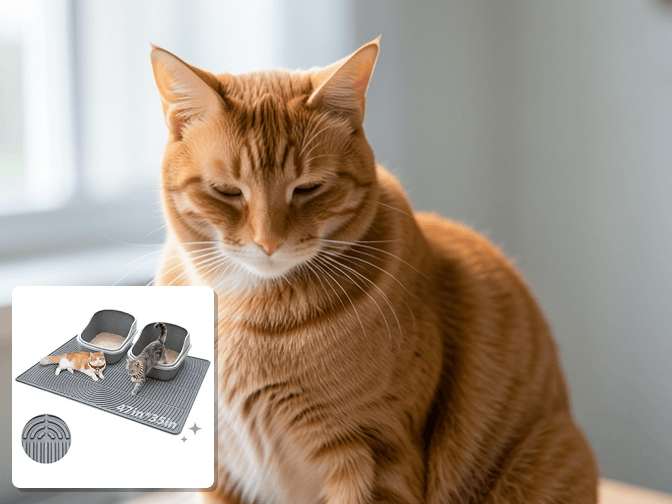 Choose a waterproof litter mat by measuring your cat's tracking zone (where litter actually lands), selecting food-grade silicone materials for longevity, and ensuring raised edges of at least 0.3 inches for spill containment. Map your cat's path for 2-3 days using masking tape to mark litter locations, then select a mat 4-6 inches larger than this area.