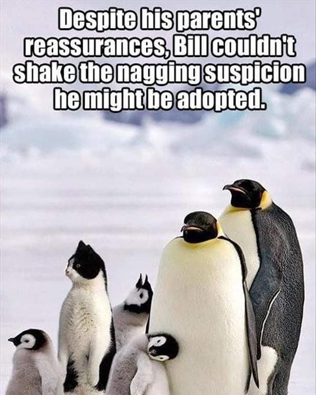 Lmao #penguin #penguins #penguinjokes #penguinmeme #penguinmemes #oddballout #oddballoutofthegroup #oddballoutofthefamily #hemightbeadopted #mightbeadopted #adopted #adoptedcat #adoptedcatsofinstagram #instapenguin #instapenguins #penguinsofinstagram #penguinsofinsta #penguins? #penguinsofinstagram? #catmeme #catmemes #catsofinstagram #catsofinsta #socute #hilarious