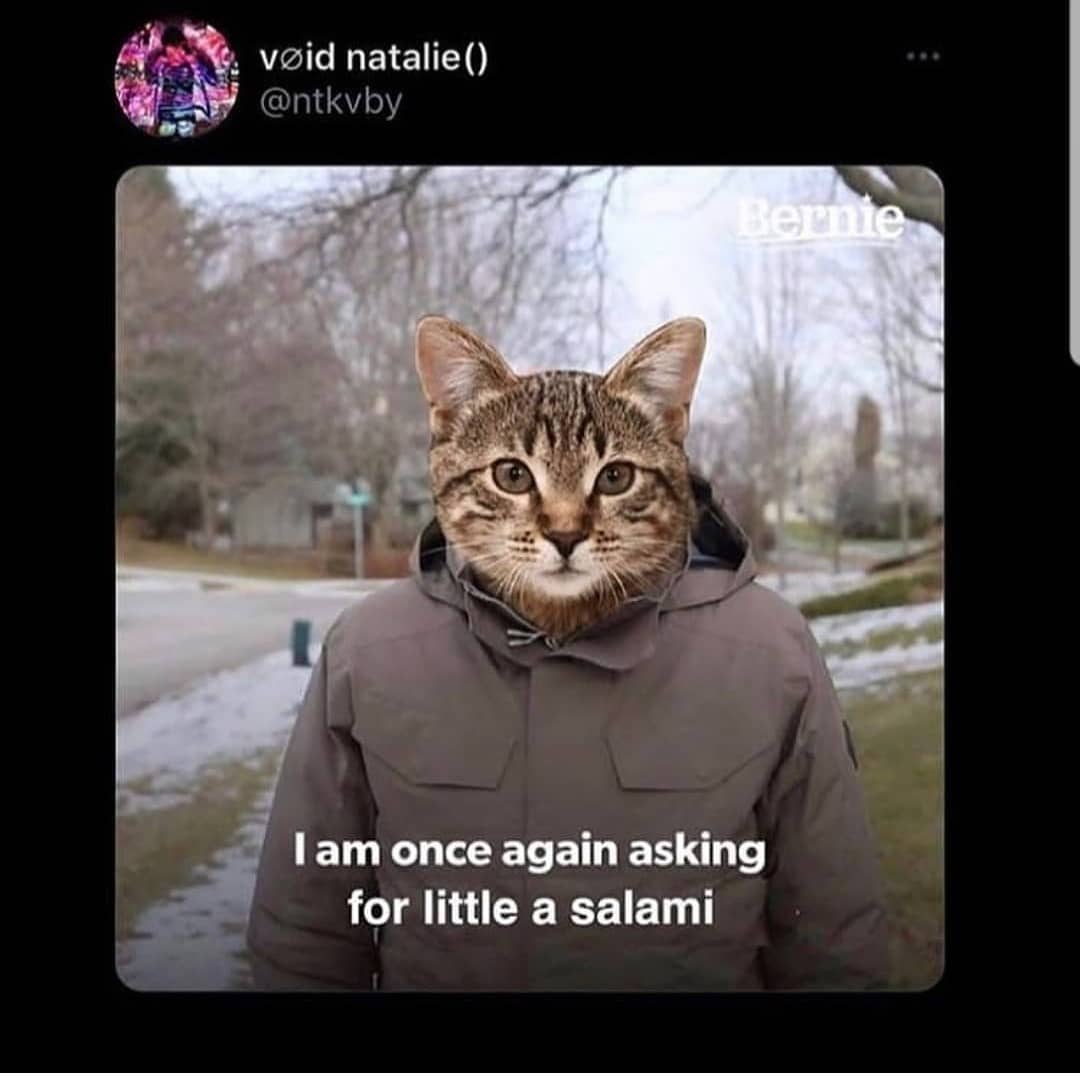 Come on #cat #catmemes #salami #iamonceagainaskingforyourfinancialsupport #filthymemes #funnymemes #memes #meme #check out #stonksmeme #stonks #memesdaily #greatmemes #spicymemes #flextapememes #dankmemesdaily #dankmemes #art #100% #2020 #memexhibition #2020gonnabegreat !